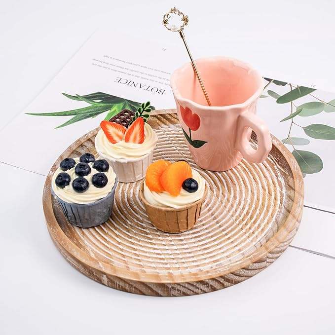 Plateau de service en bois rustique plateau décoratif en bois rond pièce maîtresse Table de salle à manger plateau de ferme pour la nourriture, les fruits