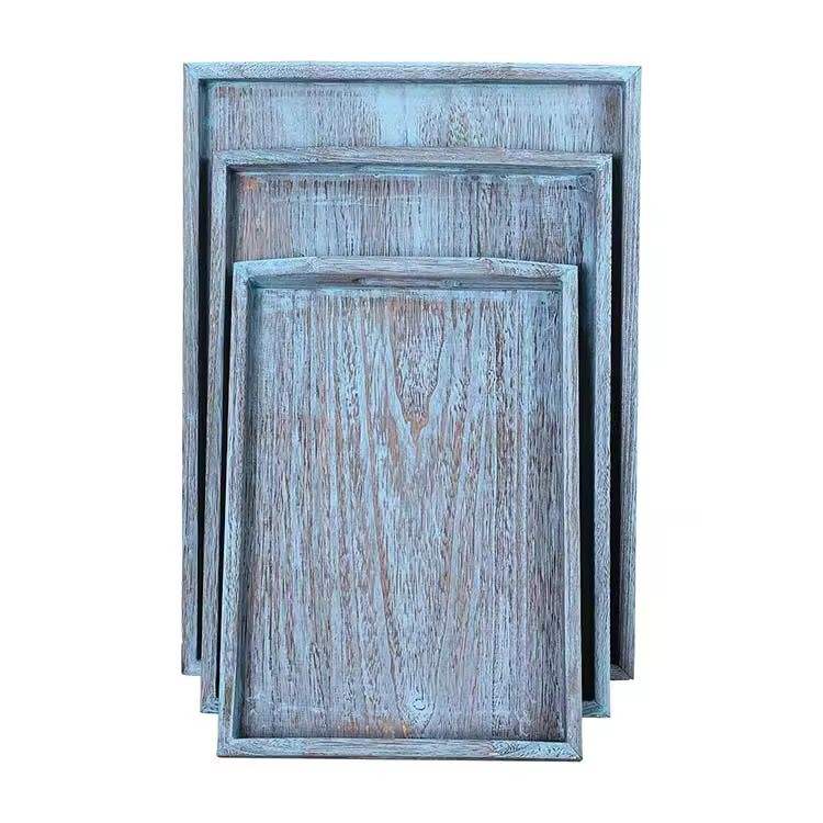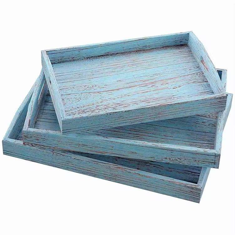 Ensemble de plateaux de service en bois rustique, finition vieillie, plateaux rectangulaires imbriqués, plateau de petit-déjeuner, plateau à thé, décoration d'intérieur