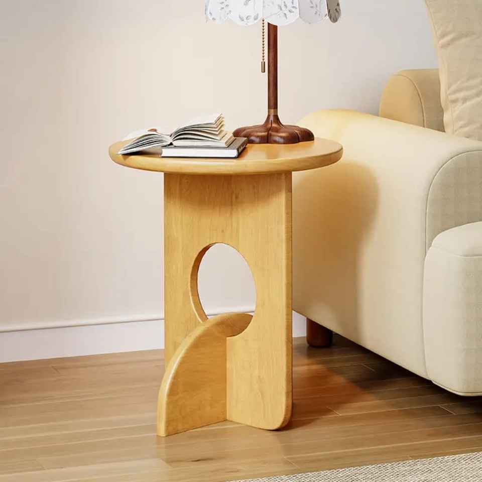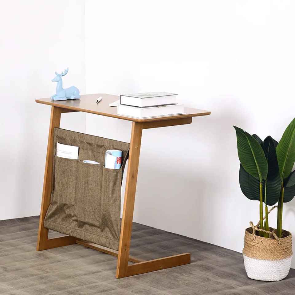Rustic Wooden Side Table Square Top Rounded Edges Woven Natural Fiber Shelf Living Room Accent With Vase Books