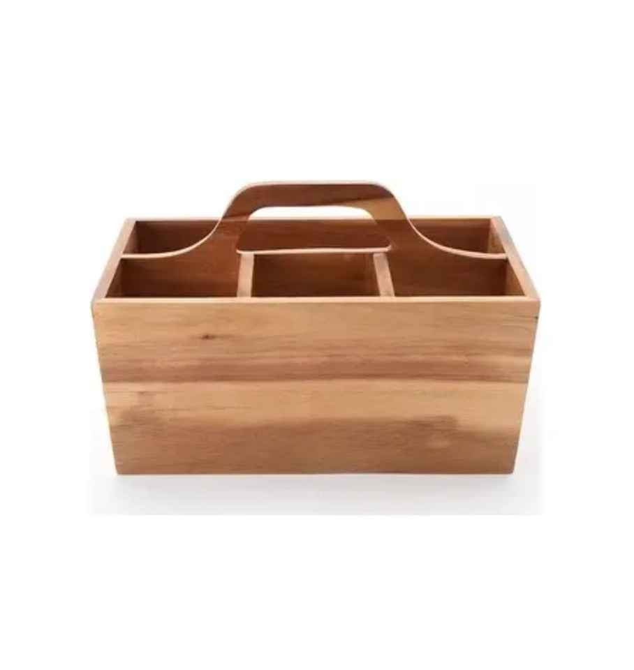 Organisateur d'ustensiles en bois rustique avec poignée, boîte de rangement multi-compartiments pour la cuisine, la salle à manger, le bureau, les fournitures de bureau