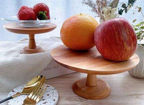 Support à gâteau rustique en bois véritable pour une présentation élégante des desserts, décoration de style farmhouse ou service pour des réunions familiales chaleureuses.
