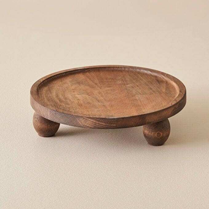 Plateau de service rectangulaire rustique moderne en bois avec pieds, plateau surélevé marron foncé, support de présentation pour bureau et décoration