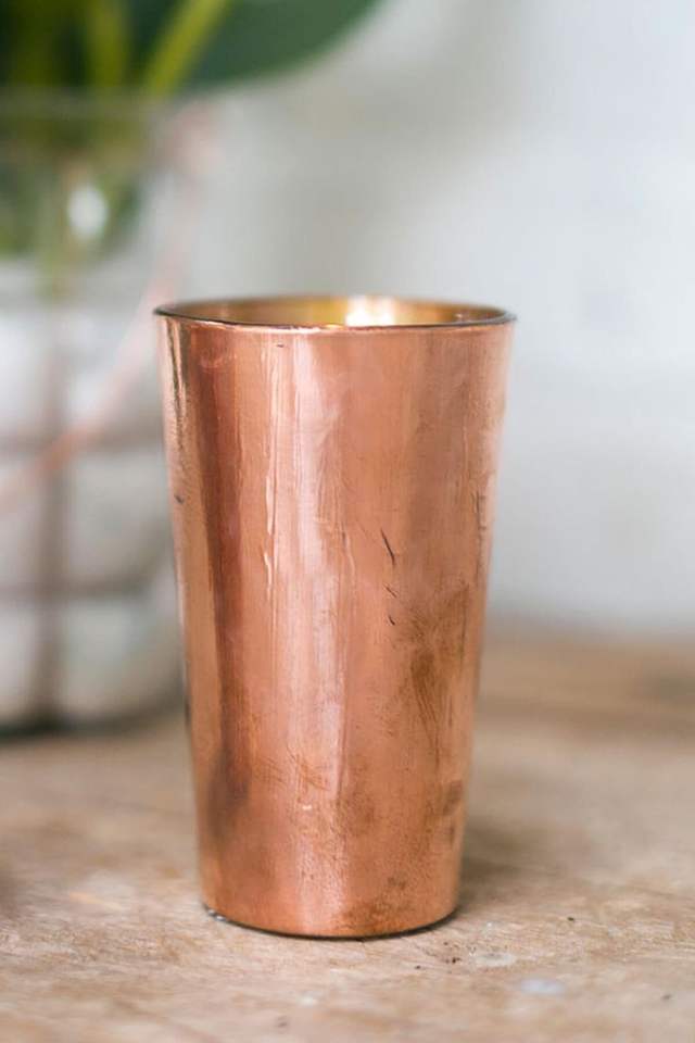 Verre à boire en cuivre artisanal rustique pour une infusion de minéraux naturels dans l'eau idéal pour une utilisation quotidienne de la santé et du bien-être