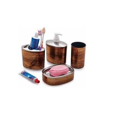 Ensemble d'accessoires de salle de bain en bois rustique avec plateau, porte-brosse à dents, distributeur de savon, accessoires de salle de bain en bois