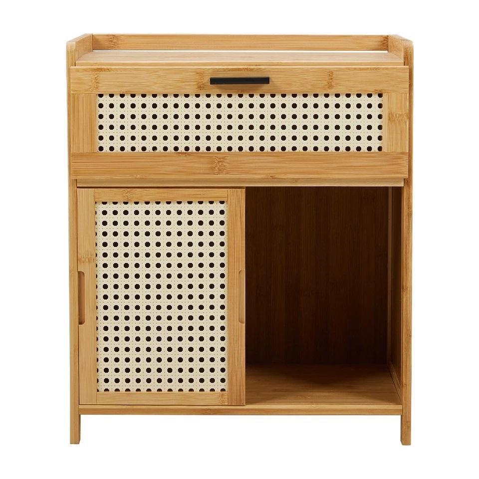 Table de chevet en bois rustique avec tiroir et porte coulissante Table de chevet en rotin pour décor de chambre à coucher moderne écologique