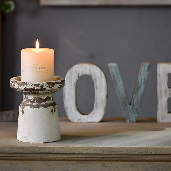 Rehausseur en bois rustique avec texture de peinture patinée, plateau circulaire, base robuste, idéal pour les bougies, présentoirs