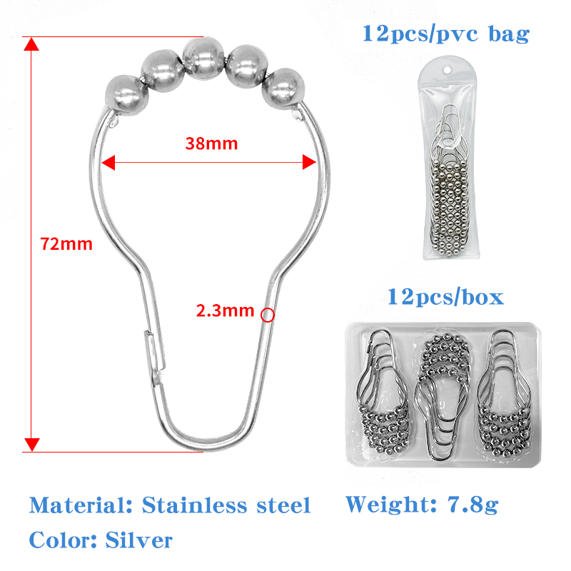 Anneau de crochet de rideau de douche en acier inoxydable, anti-rouille, à glissement fluide