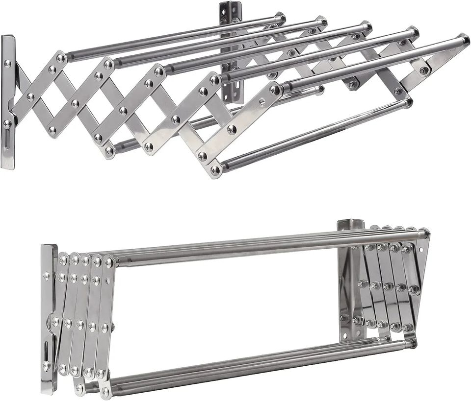 Support de séchage mural antirouille pour vêtements, en acier inoxydable, accordéon rétractable pour buanderie salle de bain