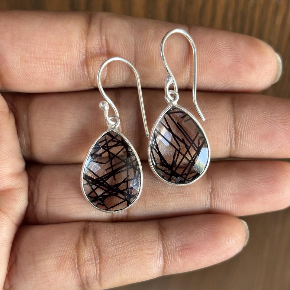 Product name:Rutile Gemstone Brass Hoops Earrings