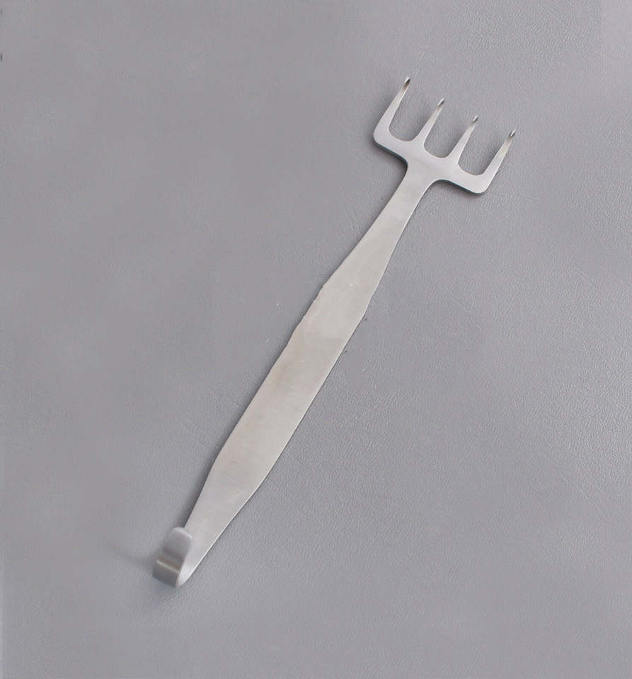 Écarteur chirurgical Ruya Freeman Rake, instrument chirurgical en acier inoxydable, manuel, 4 pointes acérées, 18 cm, 22 mm de large, CE, par Dentavex