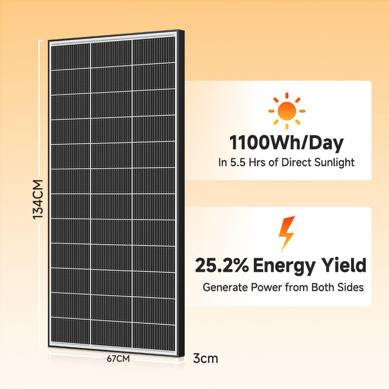Panneaux solaires monocristallins bifaciaux à charge rapide Rvpozwer, entrepôt américain, prix compétitif, efficacité de 22%, garantie de 25 ans pour