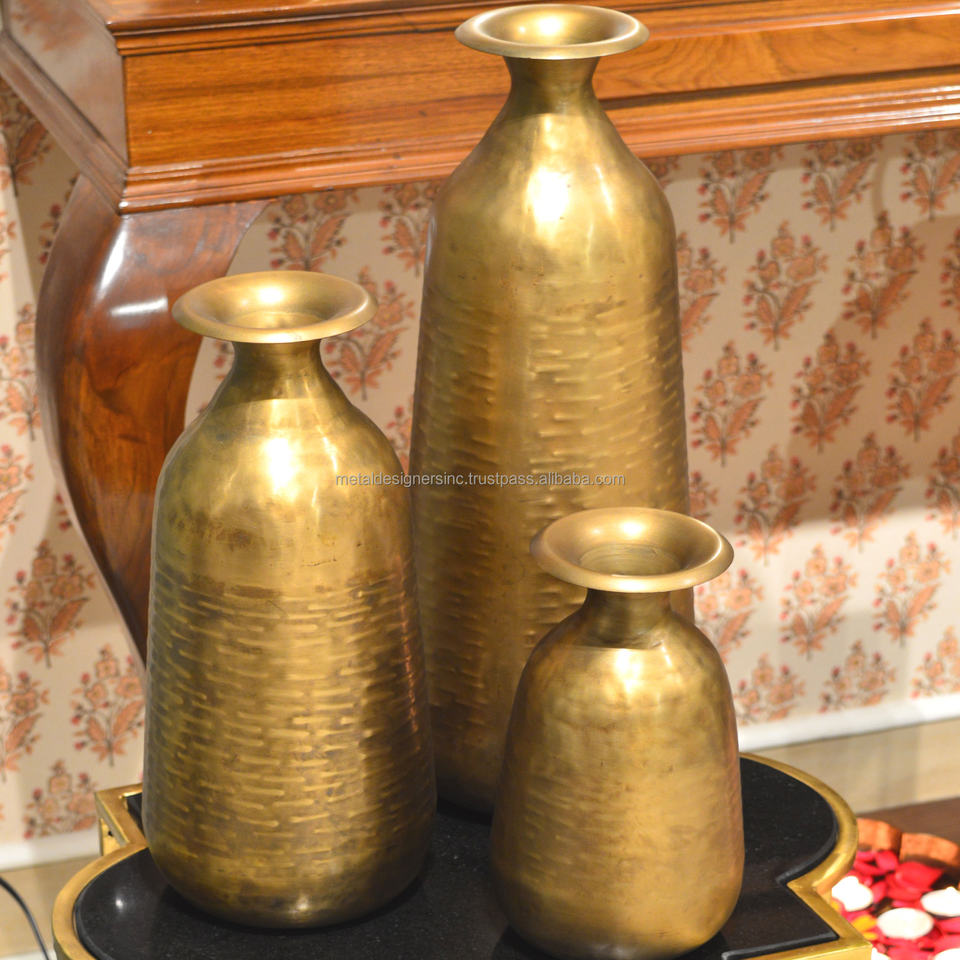 S/3 élégant décoratif laiton vieilli finition cuivre battu à la main intérieur/extérieur bouteille en métal Vase servant vaisselle maison jardin