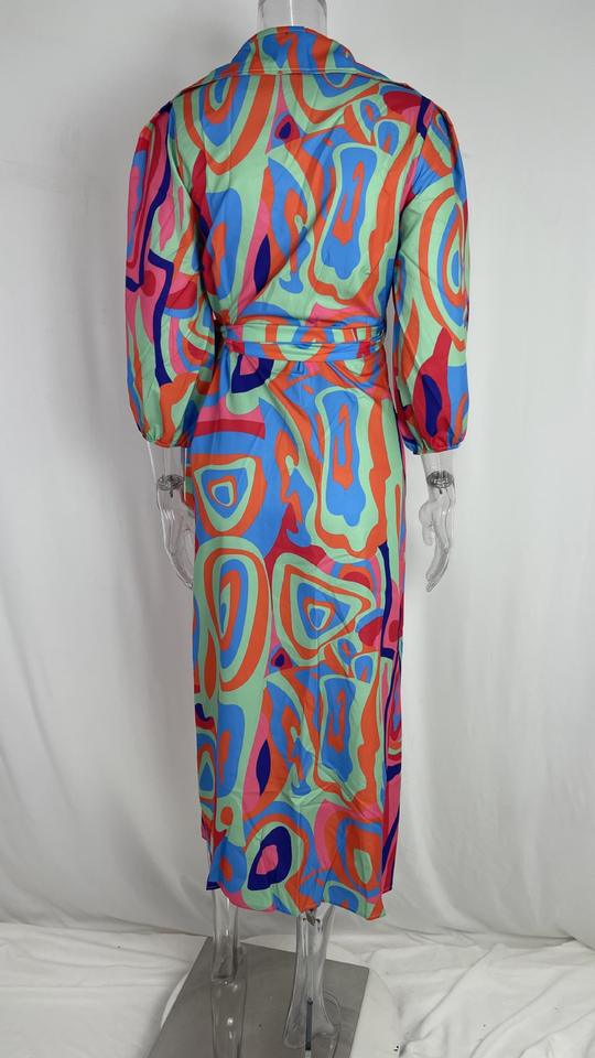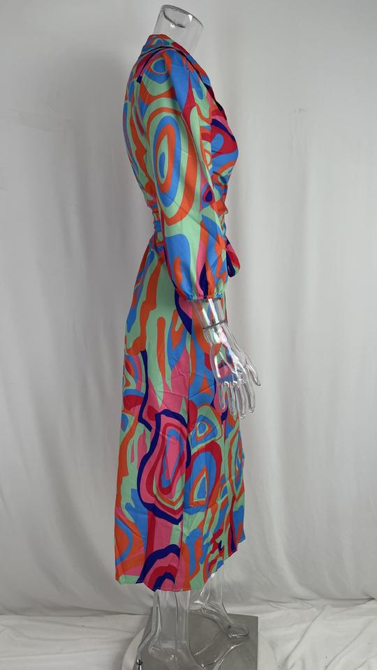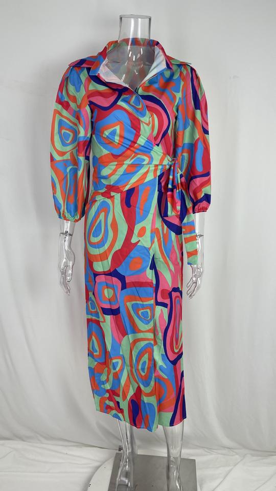 Robe à lacets avec imprimé tempérament pour femmes européennes et américaines, col en v, mode sexy, printemps S-3XL