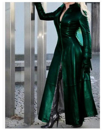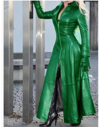 Veste en cuir pour femmes, taille S-5XL, ultra longue, en PU, couleur unie, coupe ajustée, fermeture éclair, col montant, grande taille