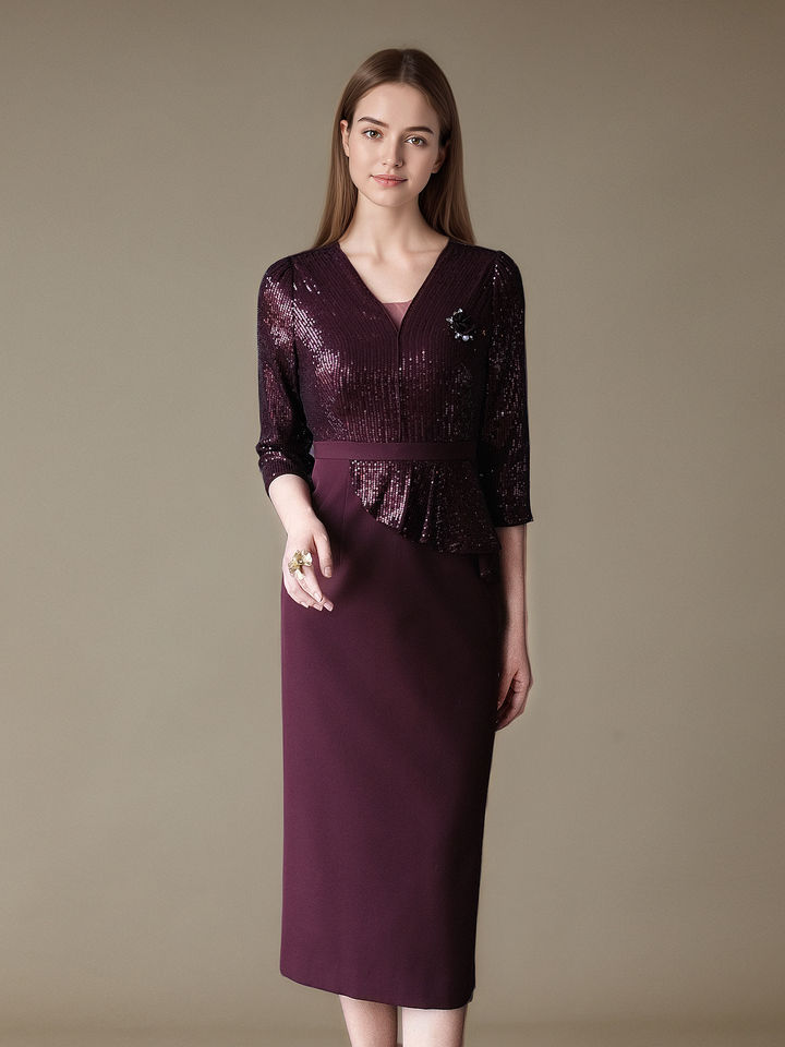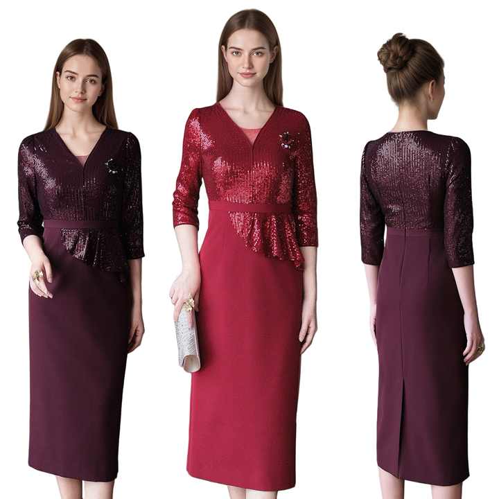 Robe midi à paillettes taille S-7XL, robe fourreau élégante à manches 3/4 pour mariage, fête, banquet, soirée, mère de la mariée