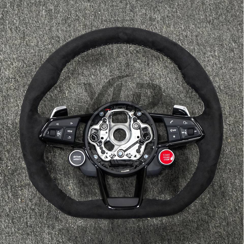 Volant en fibre de carbone semi-carbone S Line avec LED pour Audi A3 A4 A5 A6 B7 8V B9 S3 S4 S5 RS3 RS4 RS5 RS6 RS7 C7 C8 Q5 Q7