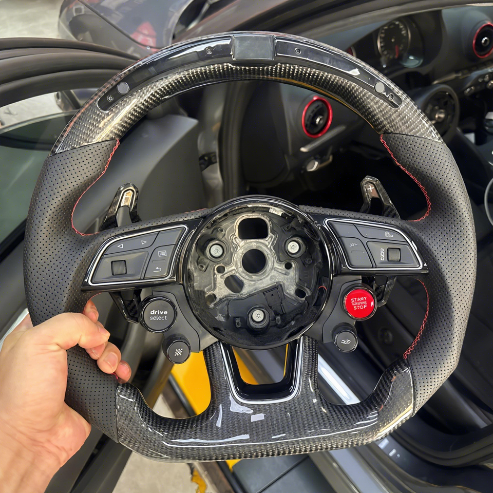 Volant en cuir S Line avec inserts en fibre de carbone et LED pour Audi