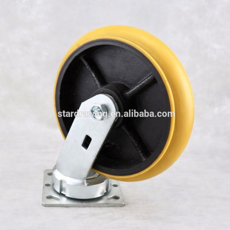 S-S Roulette industrielle de 8 pouces en fonte PU en fer forgé
