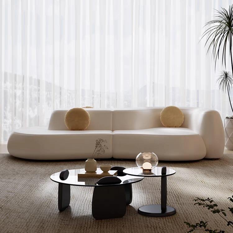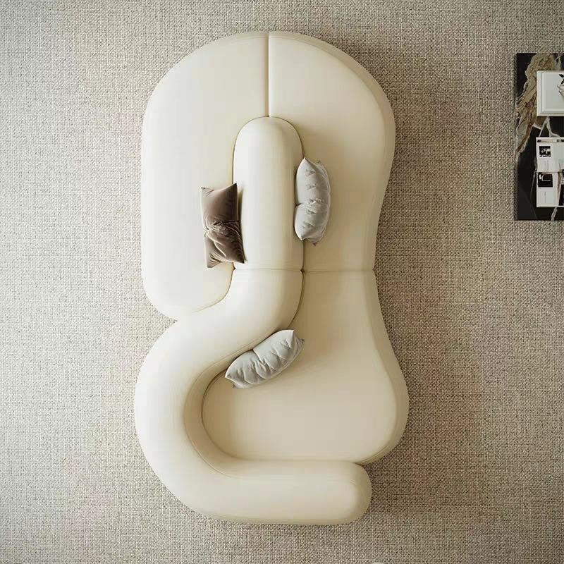 Canapé en cuir crème en forme de S, design arc, mobilier moderne pour salon