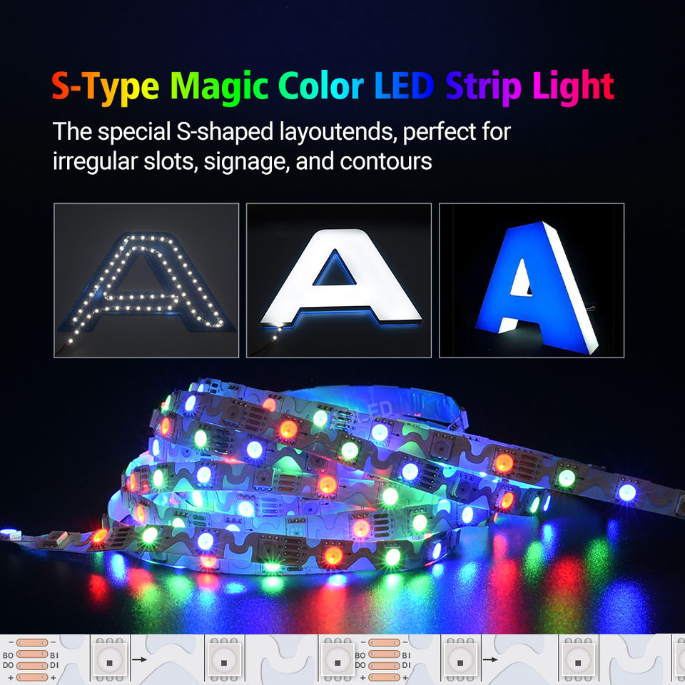 Nom du produit::DC12V LED S Type Zigzag WS2815 adressable RGBIC Led Bande