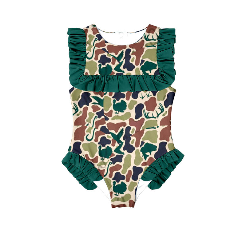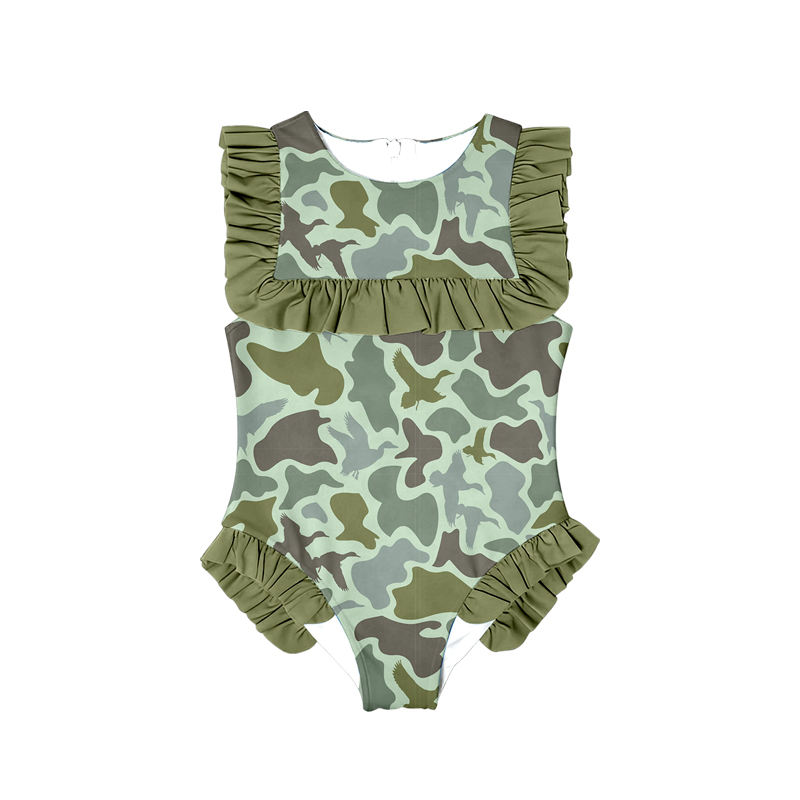 S0596 personnalisé petite fille active vert camo imprimé tenues enfants en gros fille enfant sans manches maillot de bain ensemble