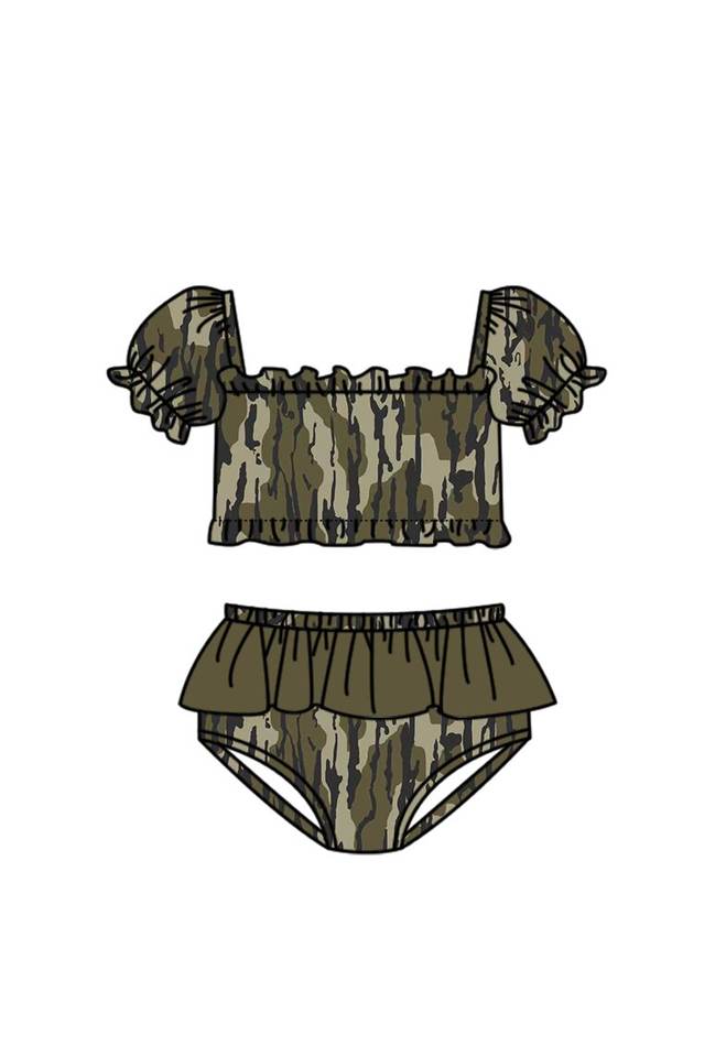 S0762 Maillot de bain personnalisé pour petite fille active, imprimé tortue bleue, vente en gros, ensemble 2 pièces à manches courtes