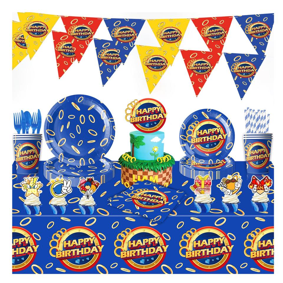 S0NlC les fournitures de fête d'anniversaire d'enfant de hérisson pour les garçons avec des assiettes en papier tasses bannière décorations de nappe