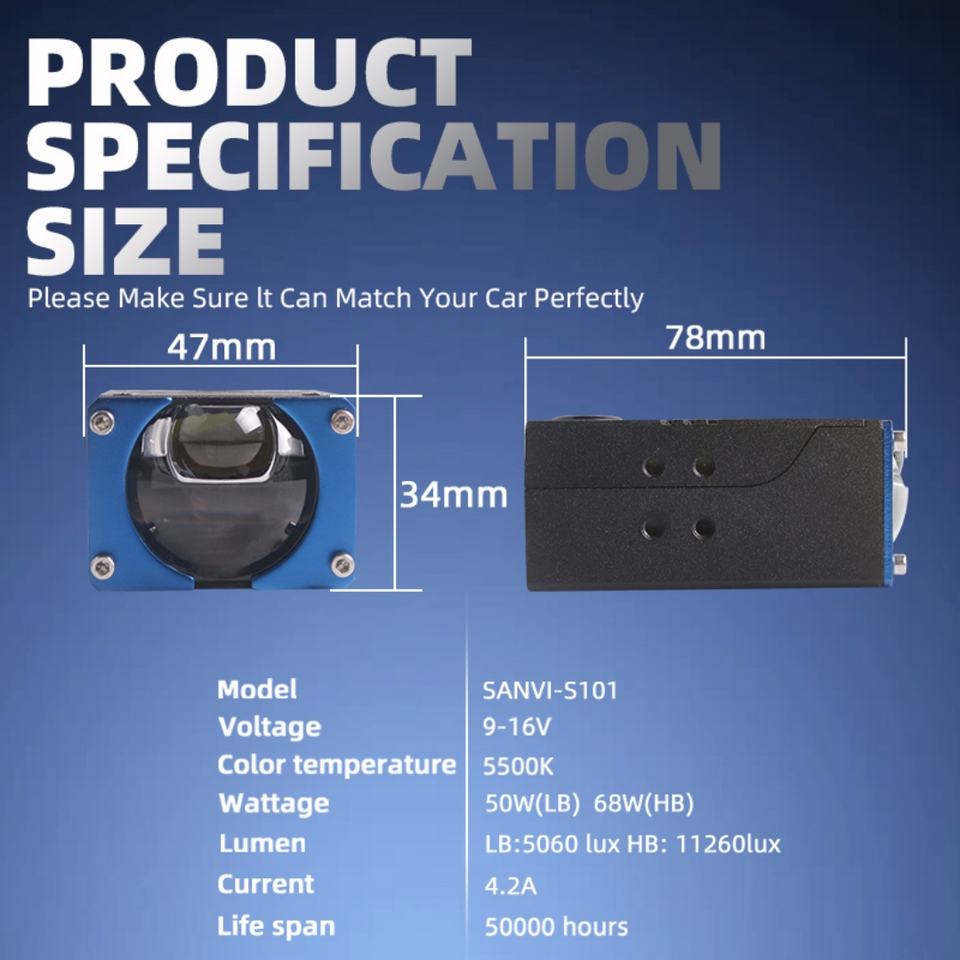 Power:low beam 50w, high beam 68w