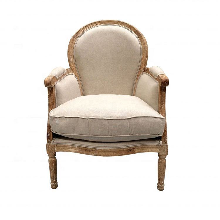 Fauteuil individuel de salon S1090, style rétro campagne française européenne, en bois massif sculpté, avec accoudoirs en velours, amovible