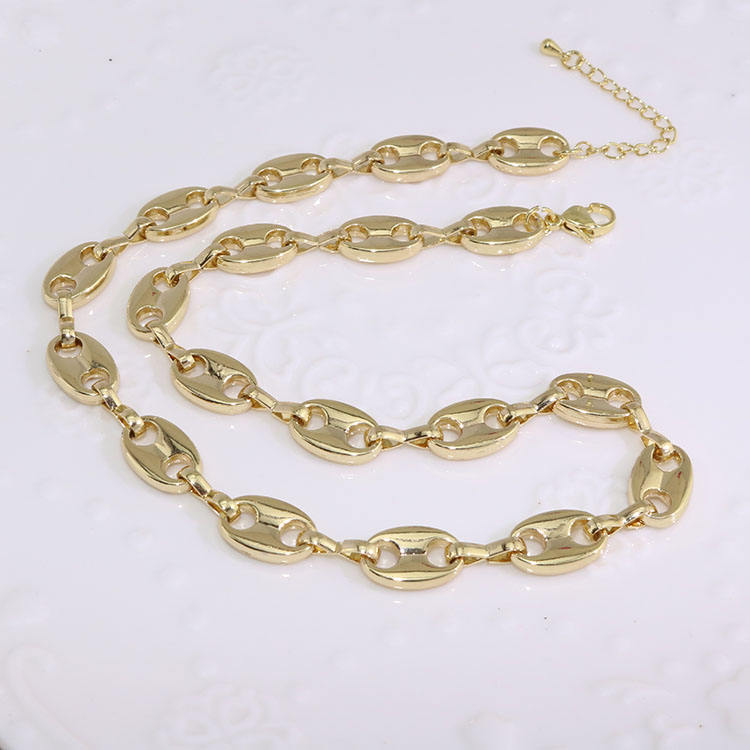 Name:gold plated coffee bean chain necklace and bracelet jewelry set