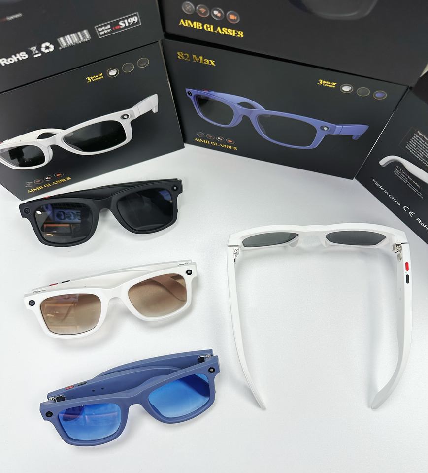 Lunettes intelligentes connectées S2 BT WiFi avec caméra, prise de photos, enregistrement vidéo et audio, traducteur IA, reconnaissance d'images