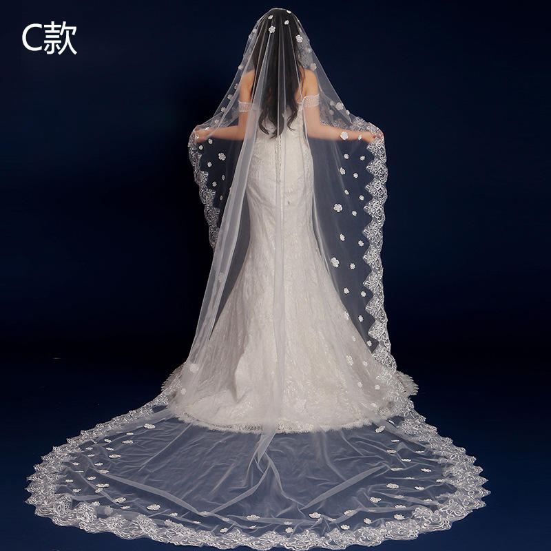 S2912F 2022 Vente en gros Dentelle Longueur personnalisable Joli voile de mariée blanc long pour mariage et fête