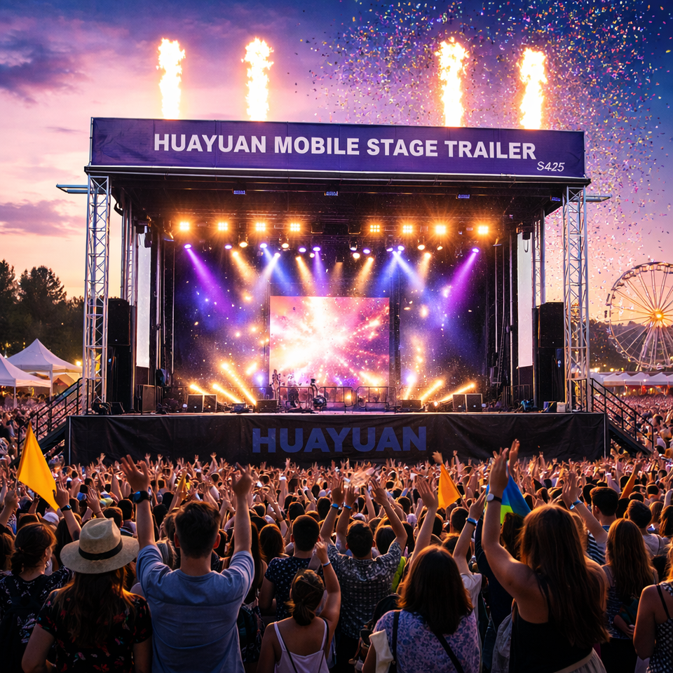 Scène de concert extérieure sur semi-remorque S425 avec déploiement en 30 minutes et conception structurelle robuste