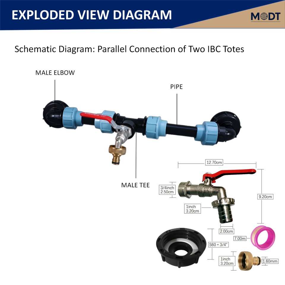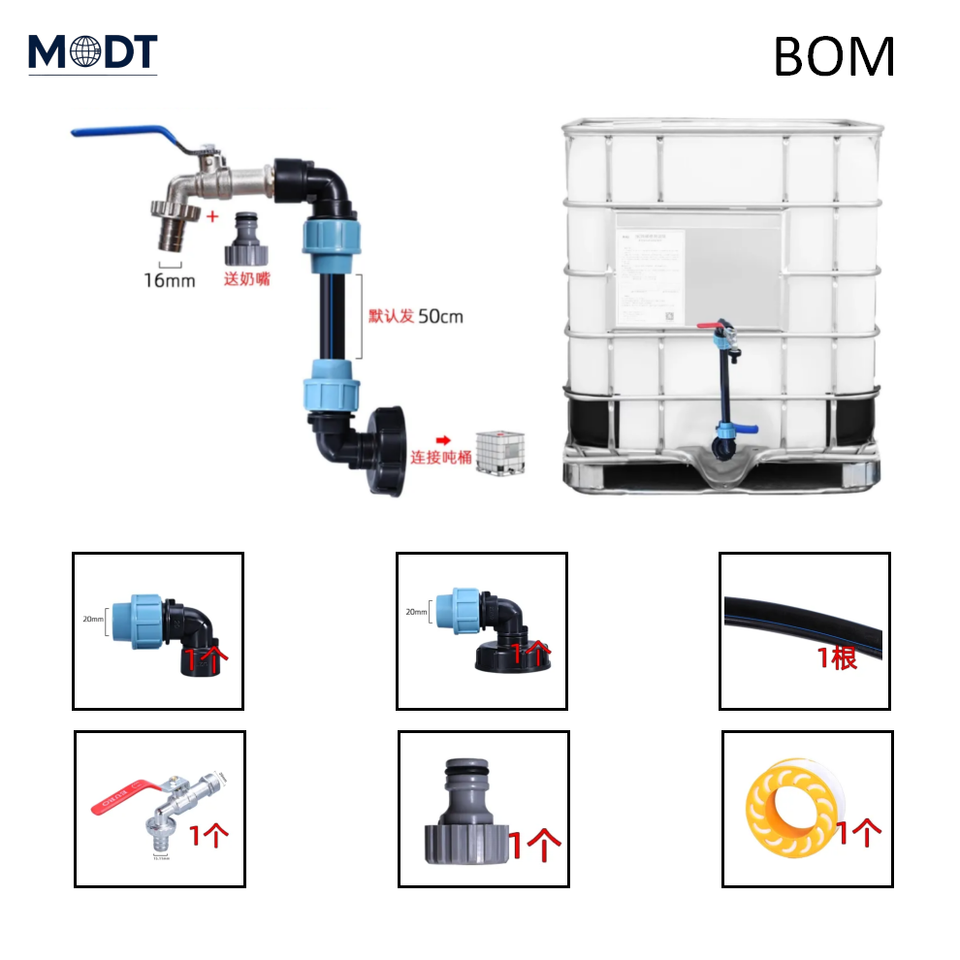 S60X60 MDT connecteur de Valve rapide robinet de réservoir IBC pour Tube PE 20/25/32mm surface lisse raccord de tuyau en plastique matériau PP