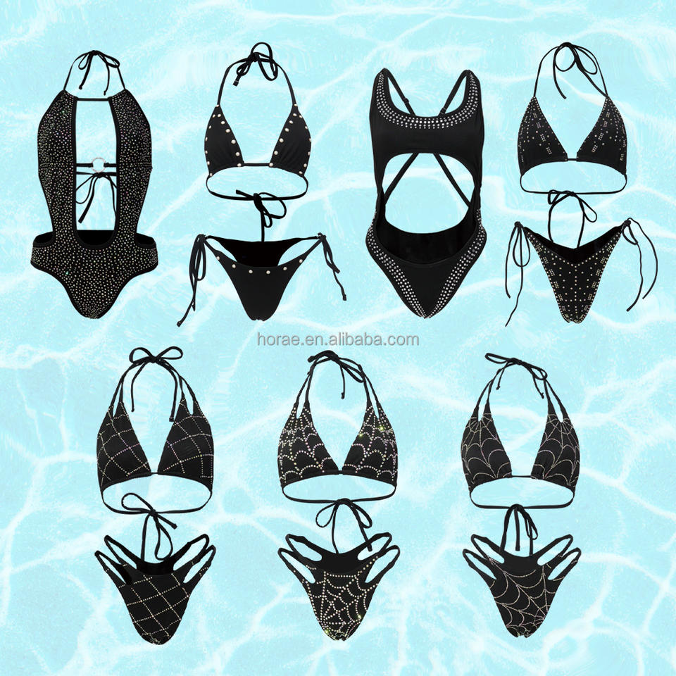 Ensemble Bikini Réglable S692 d'Usine pour Femme, Culotte de Bain Échancrée Sexy en Cristal, Tenue de Stripper Scintillante, Nouveauté Maillot de Bain Strass