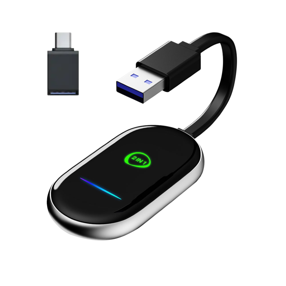 S7 Carplay Android Auto 2-1 Smart Wifi 5.8 BT5.4 Dongle Carplay USB Boîtier en alliage de verre et de zinc pour une bonne dissipation de la chaleur