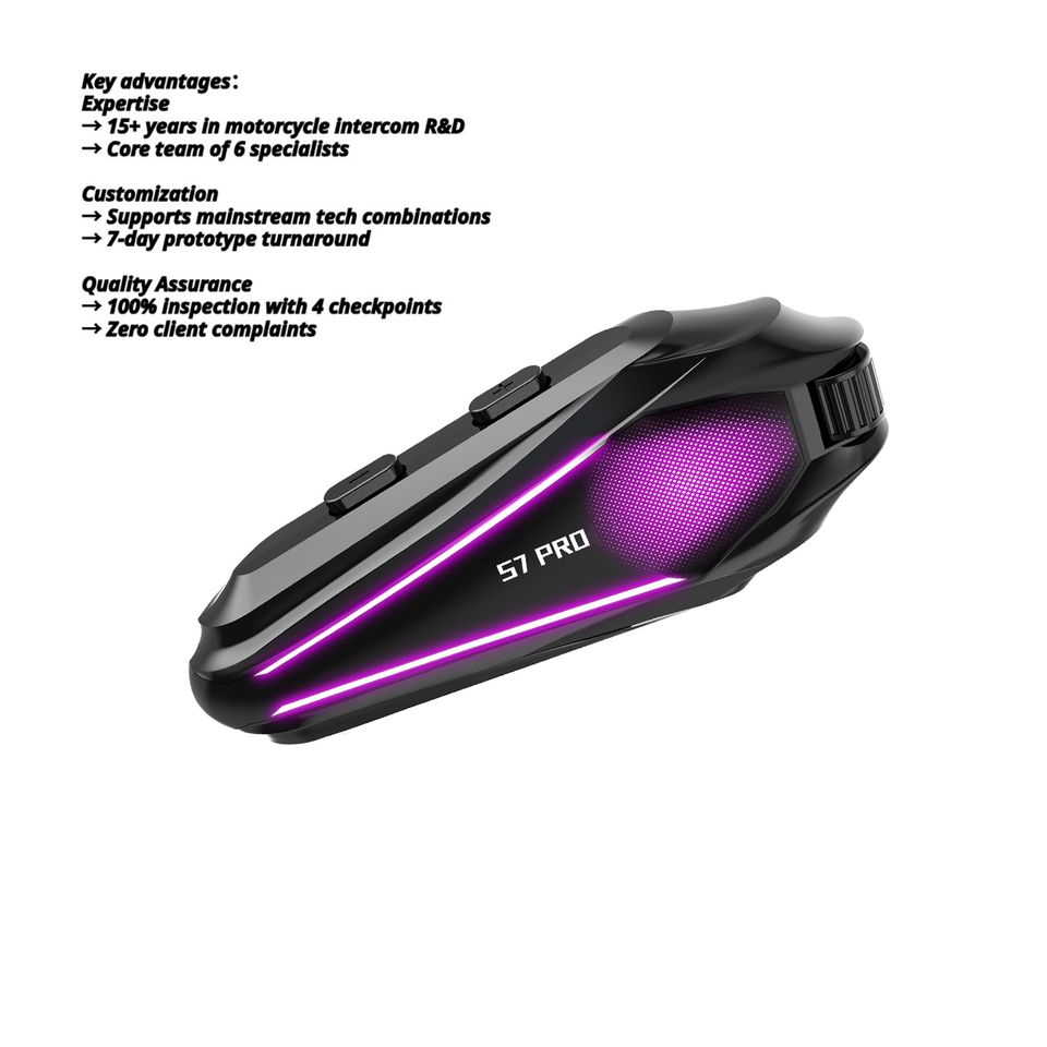 Casque de moto S7Pro pour interphone, prend en charge la communication en groupe via Mesh, le partage de musique en duplex intégral, la radio FM et l'annulation du bruit