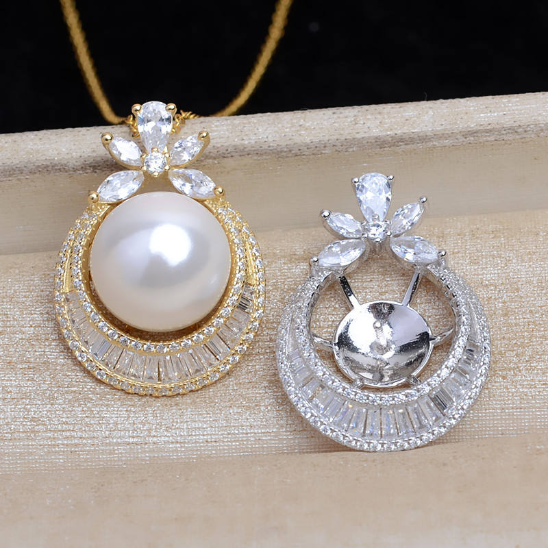 S925 Gold Plated Silver Pendant Accessory Holder DIY Pearl Bottom Holder 13-14 Concealer Jewelry Findings Type Beads JG5349