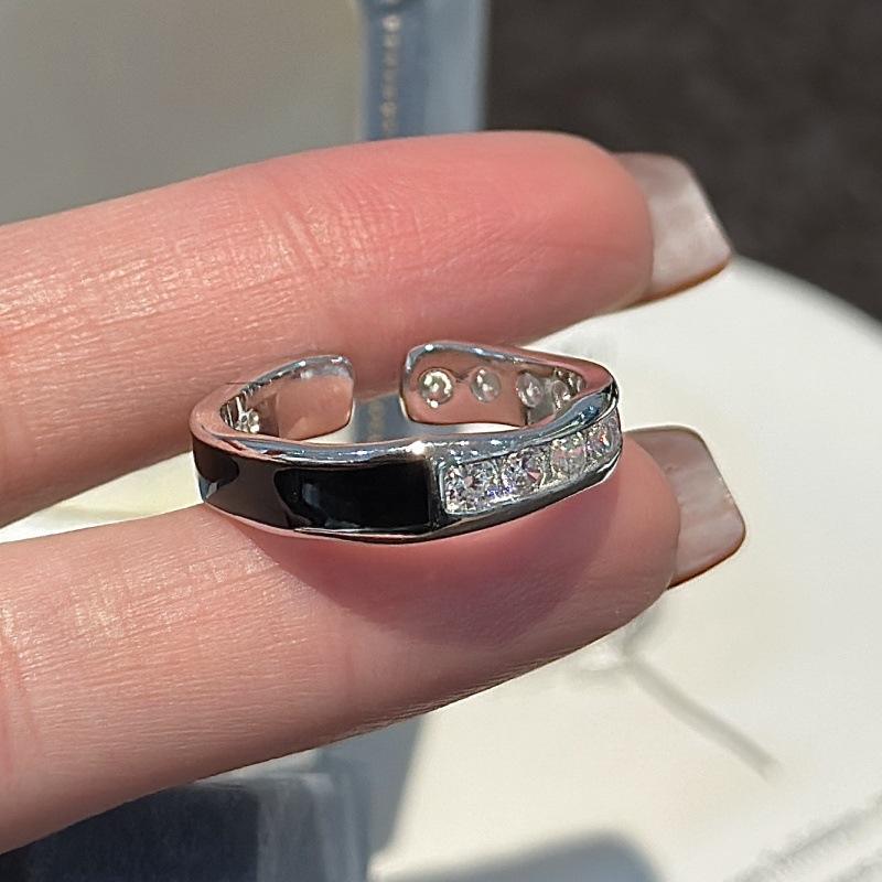 Bague en argent pur S925 avec glaçage noir, design de niche, simple, élégante, de qualité fine, incrustation de lignes vintage, style bouche ouverte