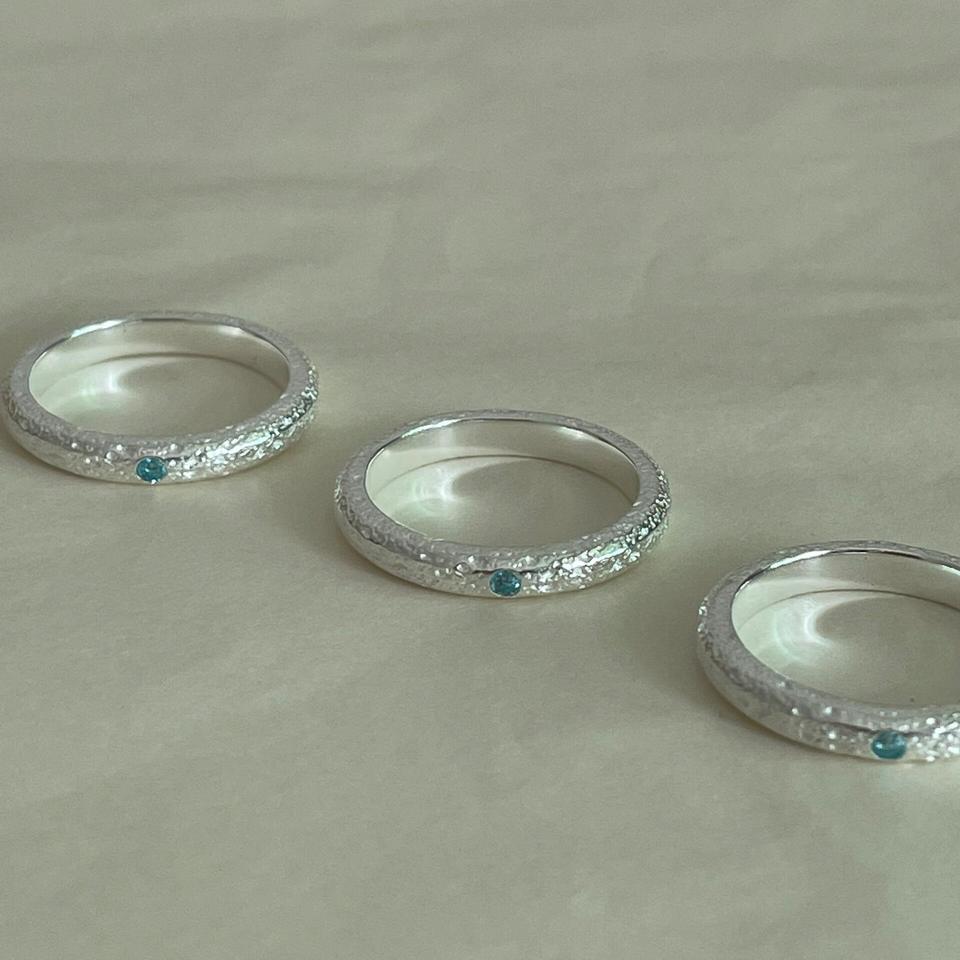 S925 Pure Silver Blue Love Song Sea Blue Treasure Frosted Texture Brushed Ring Simple Couple Ring Gift for Best Friend Geometric