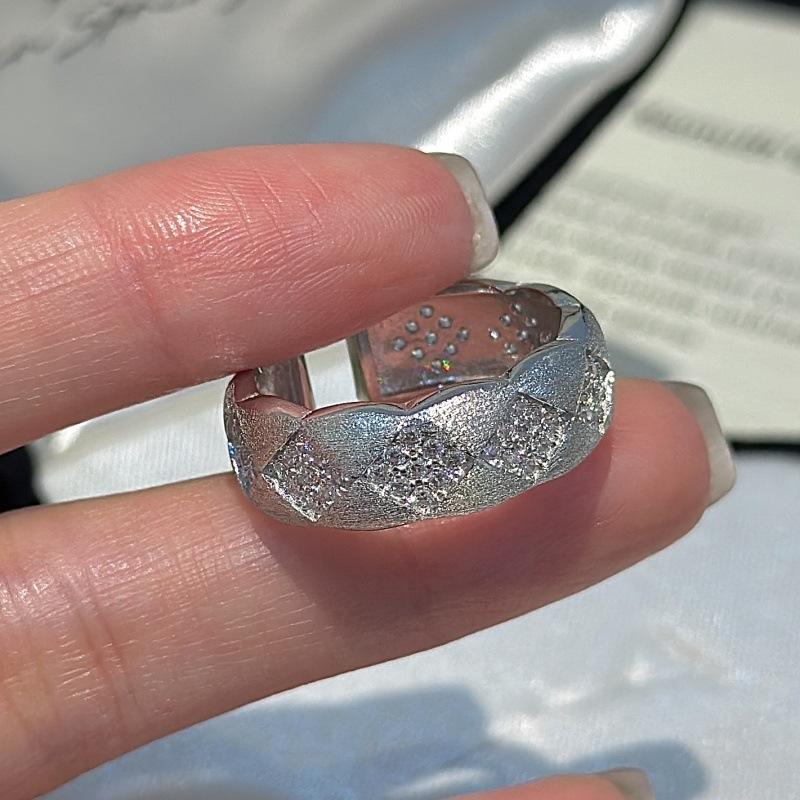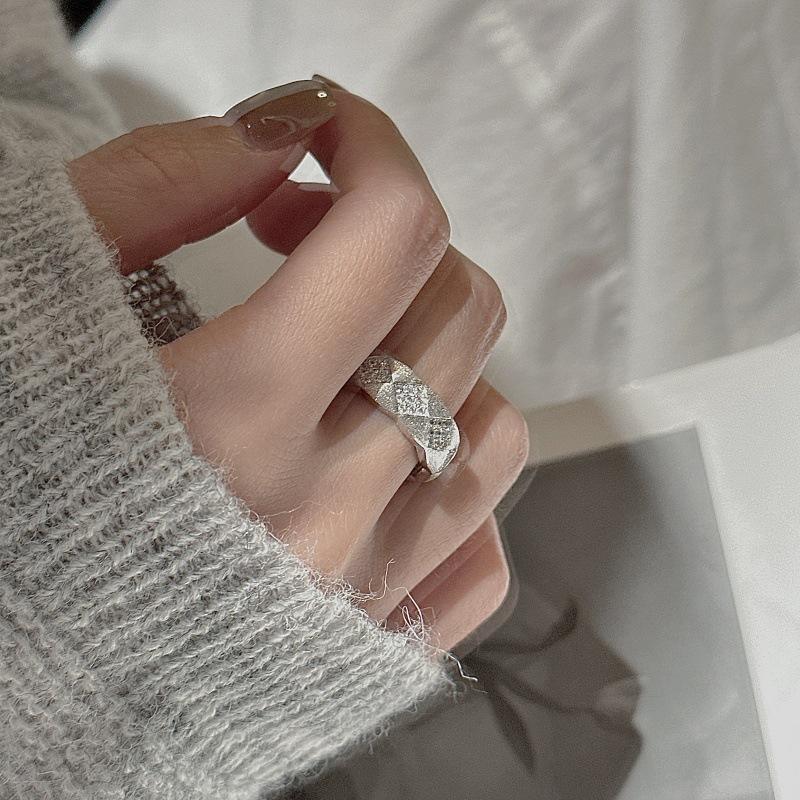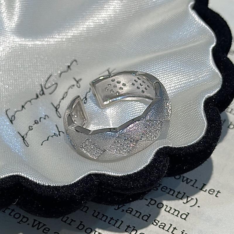 Bague en argent pur S925 avec diamant brossé, design romantique solitaire avec micro-zircon incrusté, bague ouverte vintage avec placage rhodium