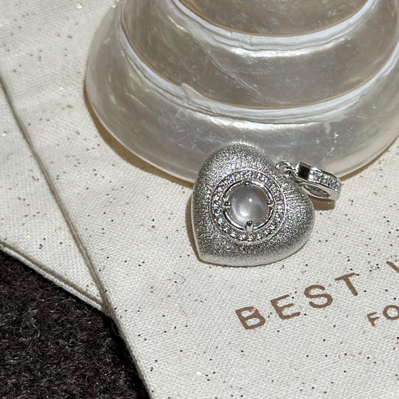 S925 Pure Silver Brushed Heart Pendant Niche Design Simple and Fashionable Vintage Sweet Cool Heart-Shape Charms