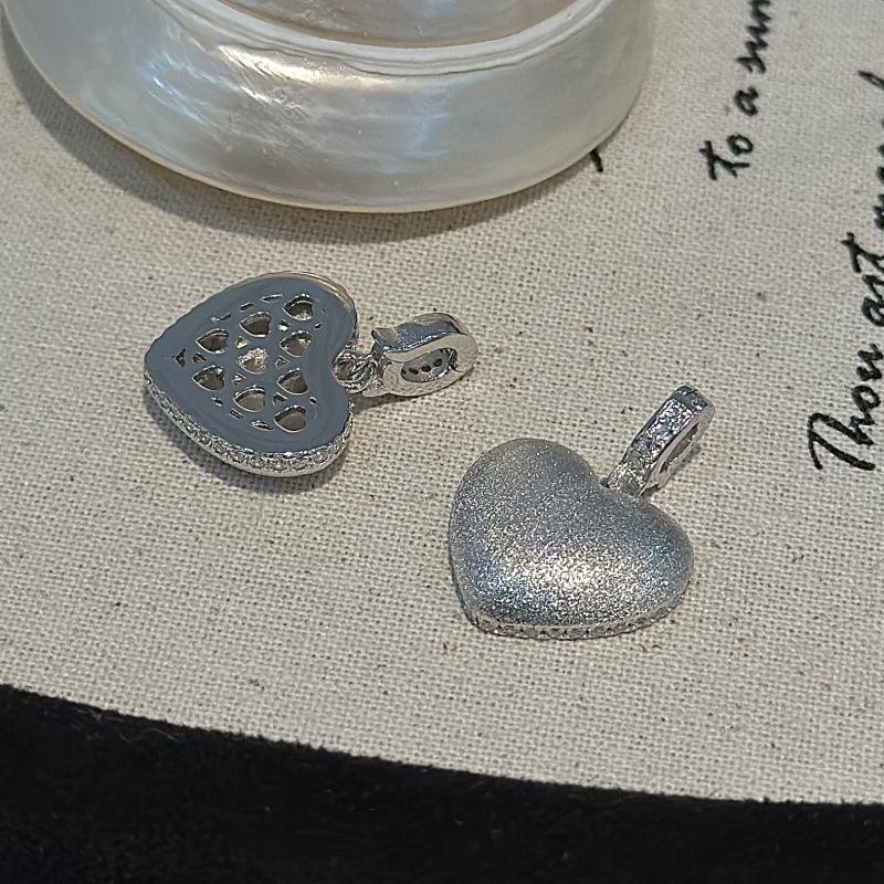 S925 Pure Silver Brushed Heart Pendant with Medieval Niche Design Light Luxury Vintage Style Cool and Sweet Chic Charms