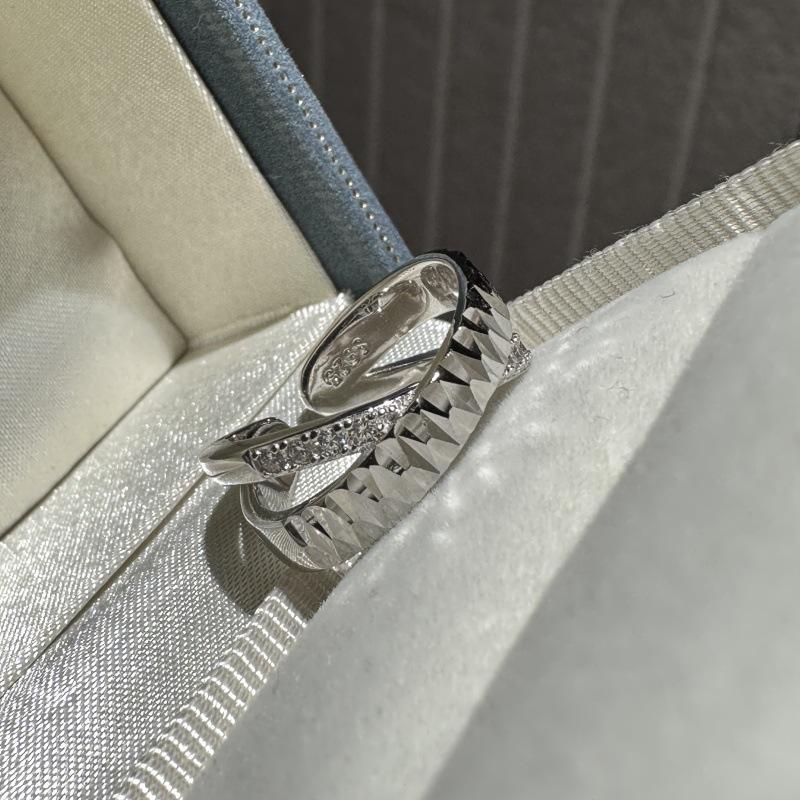Bague en argent pur S925, motif floral CNC, plaqué or 18 carats, luxe léger, simple, tendance, design de niche médiéval, ouverture croisée, incrustation