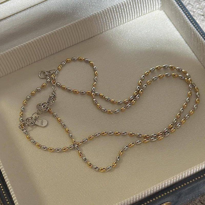 Collier double flash contrasté en argent pur S925, style vintage, design simple et tendance, collier superposé fin