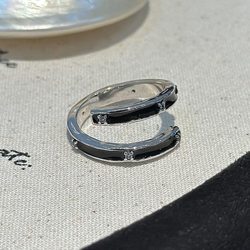 Bague ajustable Wenchi S925 en argent pur, motif croix, design simple médiéval vintage, zircon émaillé, style gothique de niche, ouverte, Chine