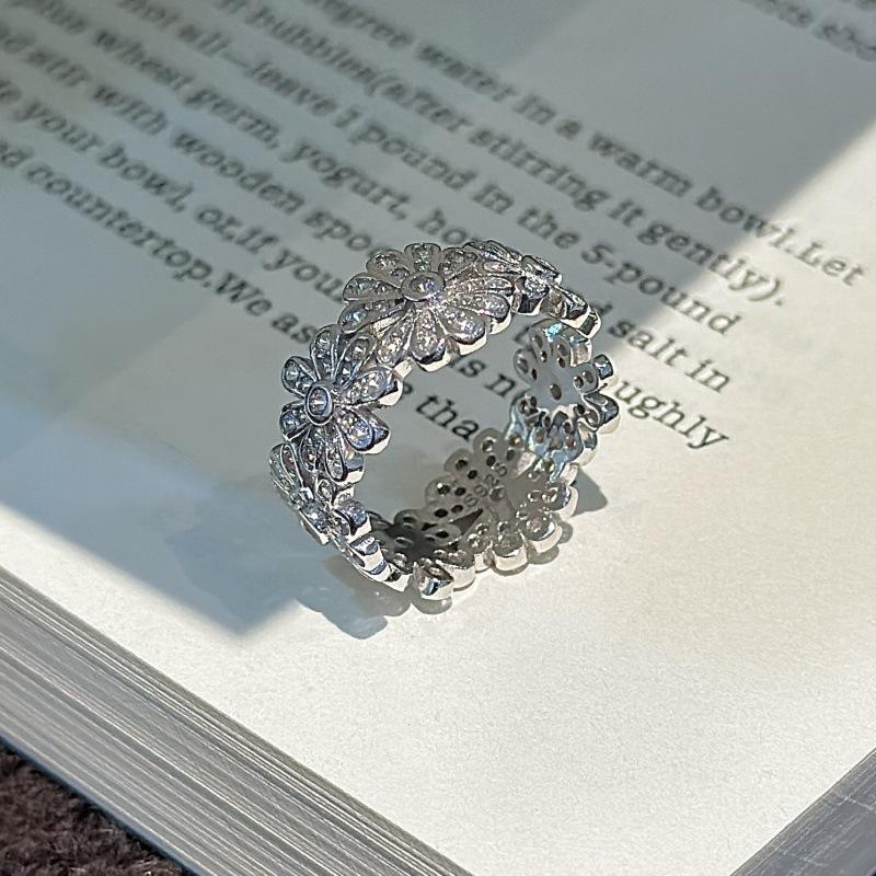 Bague en argent pur S925 avec design de niche, élégance française simple, style médiéval vintage, petite fleur ouverte, incrustation de pierres