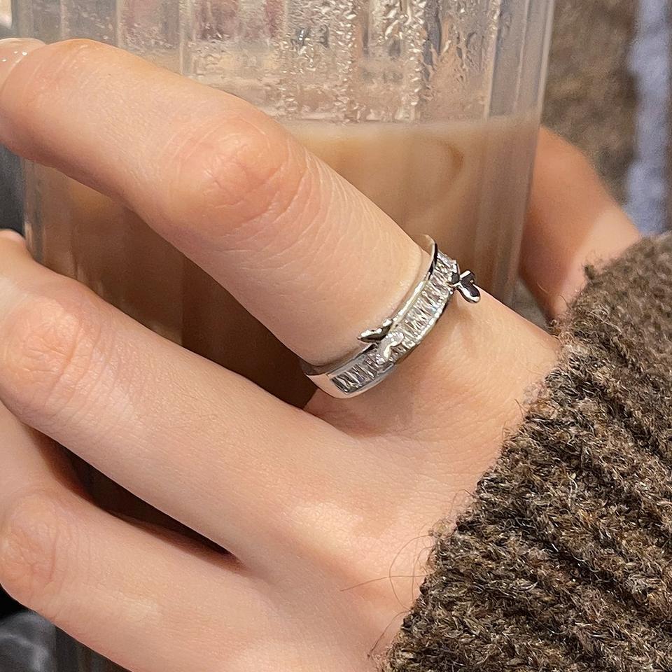 Bague papillon 3D exquise en argent pur S925, design haut de gamme à bouche ouverte avec incrustation