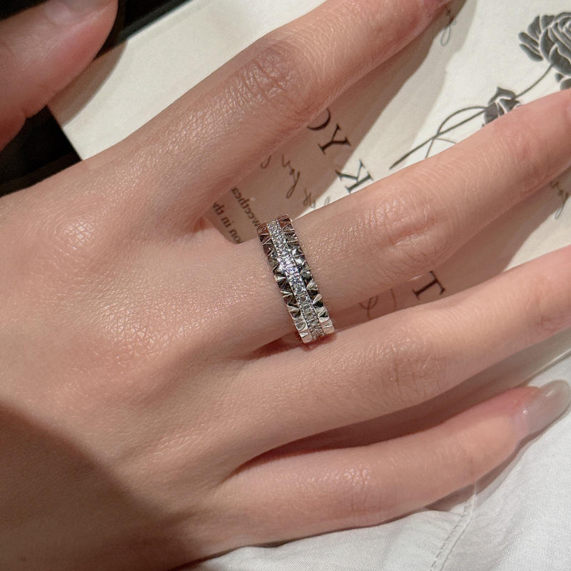 S925 Pure Silver Diamond Shaped Ring with Cut Surface Medieval Niche Design and Inlay Setting Simple Fashionable Vintage Style