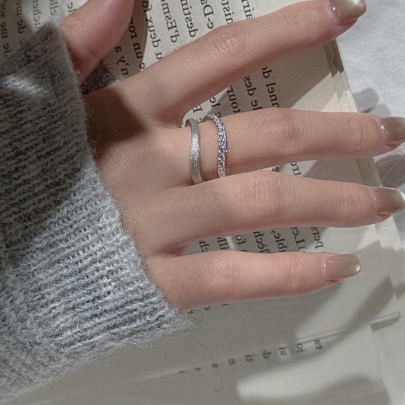 Bague en argent pur S925 à double couche, design de niche, simple, tendance, vintage, incrustation de zircon, plaqué or 18 carats, bague à ouverture incurvée hip-hop
